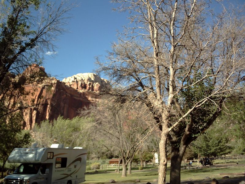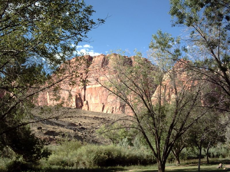 | There was a beautiful camp site at Fruita in the Park. So called because the early Mormon settlers used this valley to grow apples. There are still orchards. |