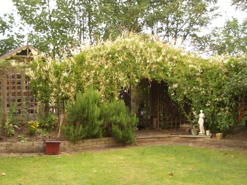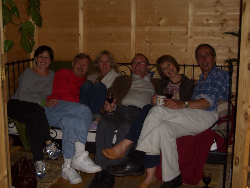 In the backyard, J&J built a summerhouse in the backyard to capture the infrequent sunshine and when the sun shines, it makes the summerhouse a paradise.John and Janette use it frequently for reading, listening to great music and private chats with each other. They also use it for entertaining friends as you see in the picture - in this case Janette's friends and relations at a "Wecome BBQ". (Diane, Peter, Janette, Christopher, Winnie and John).