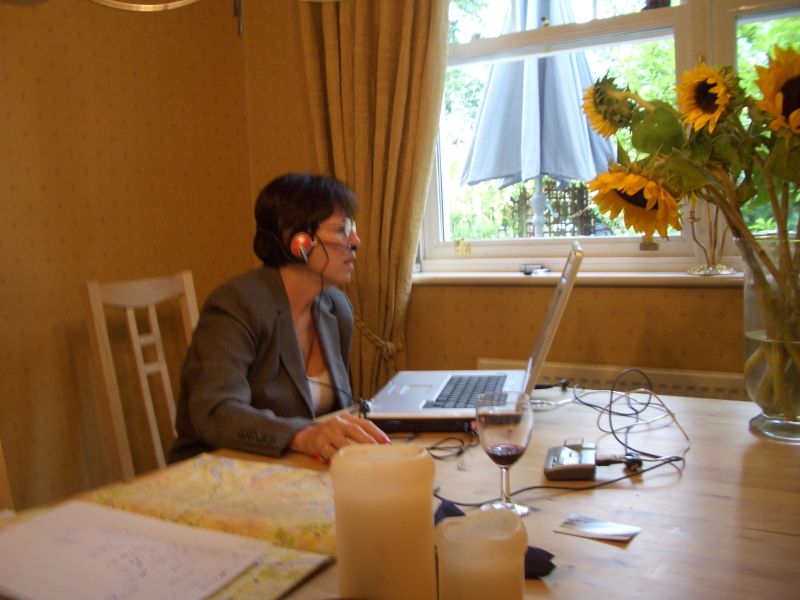 The front room is the central meeting place for the family. Here John is catching up on his back-to-school work while Peter and Diane are in the dining room checking emails and making calls to the US through the new Skype facility.