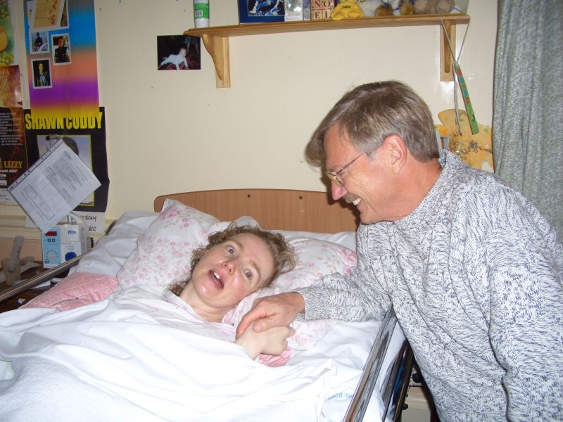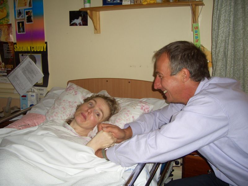 We went to see Sarah, John's first child, now in her early forties. She was diagnosed with Multiple Sclerosis over twenty years ago. She is in a Sue Ryder home which is a charitable, world-wide care organization. This particular home is in a mansion as you will see from the shots of the house. Sarah is able to communicate in a very limited way but is still a delightful personality. She was very surprised to see Uncle Peter. In the last picture Janette, who is a reflexologist, is helping Sarah by touching pressure points in her feet.