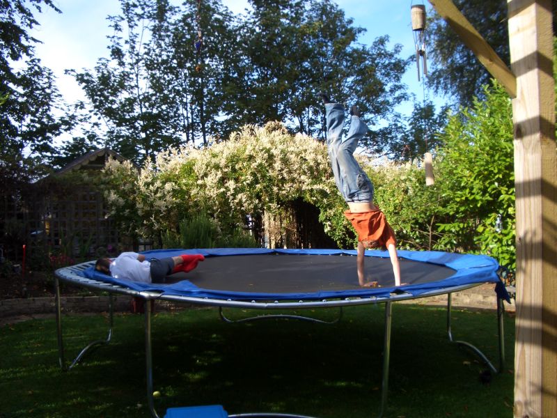 The back yard is great for relaxing (the people in the group are Peter - aka "Wee Pete", Peter, Diane, Janette, John-Christopher and Christopher-John ) and the perfect place for Peter and his friend Sam to use up their energy