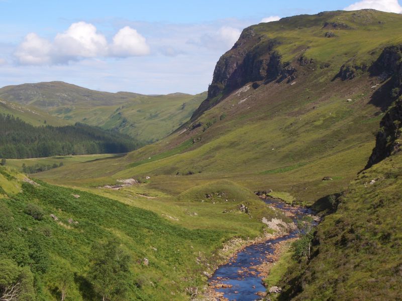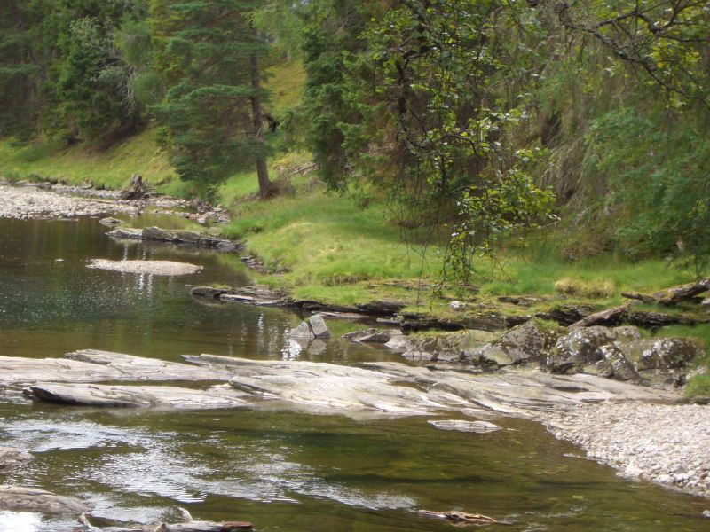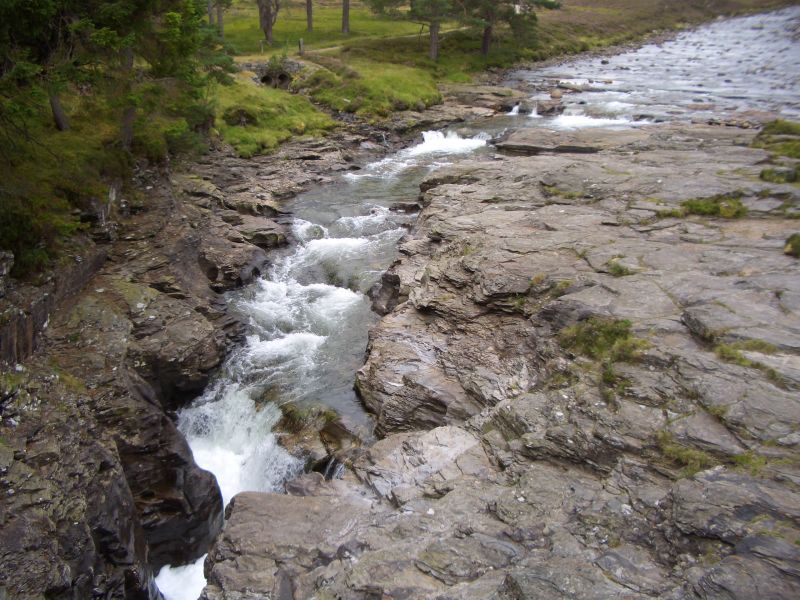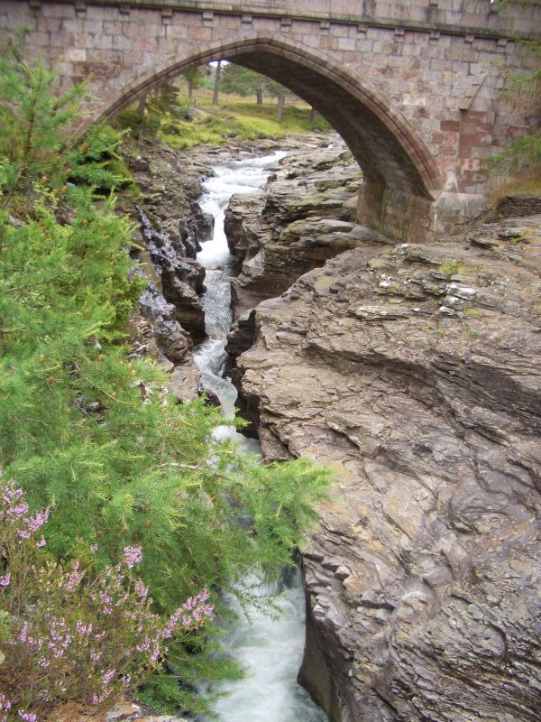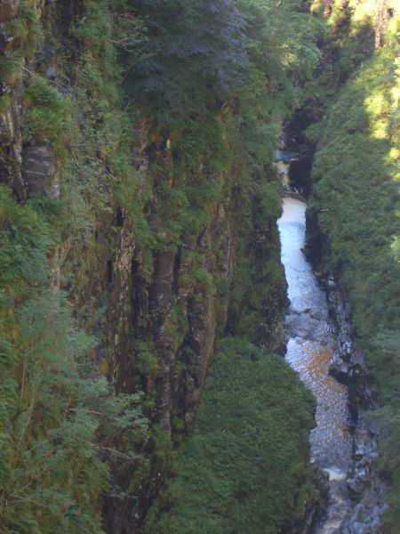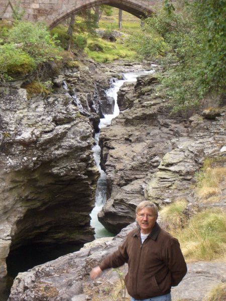 We stayed at a very pleasant B&B and ate at the local golf club (fish and chips, of course). We set off early the next morning to visit the Linn of Dee. Most of the place names are Gaelic and had English translations on the signs but the pronunciation can be quite strange. We did not know what "Linn" means. Here is an example of Gaelic