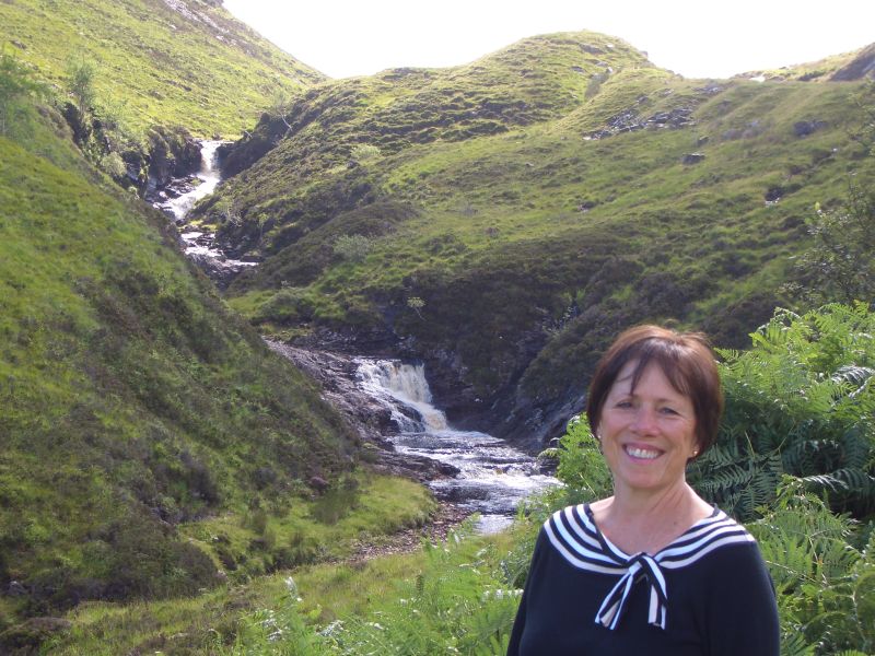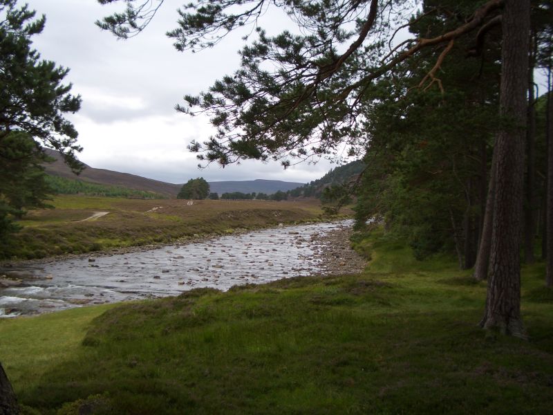 It got more and more rugged. Eventually we went over a pass through the Cairngorm mountains and down into Braemar. This is a really cute little town just down the road from Balmoral Castle where the Queen stays every summer and attends the Highland Games which involve he-man sports like throwing the hammer and tossing the caber (which is like a telephone pole) plus lots of dancing. She was in residence so we were not able to visit.