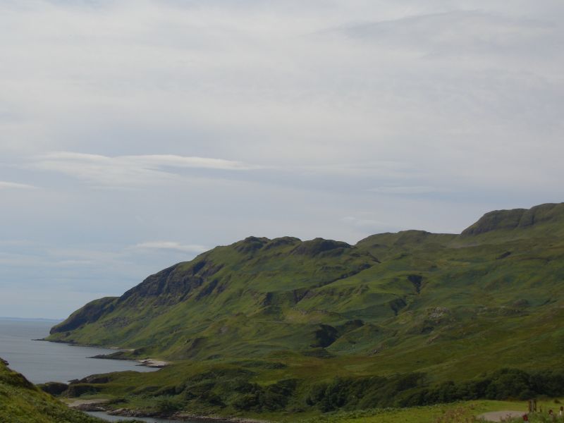 The road to Skye goes over a new bridge at Kyle of Lochalsh and we drove past the Cuillin Hills which are very high cone shapes clustered closely together.