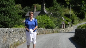 |     Next day Jeff went to see the British Open and the other three of us went to Wales for the day. Here is Diane at the start of her favorite walk to Aber Falls |