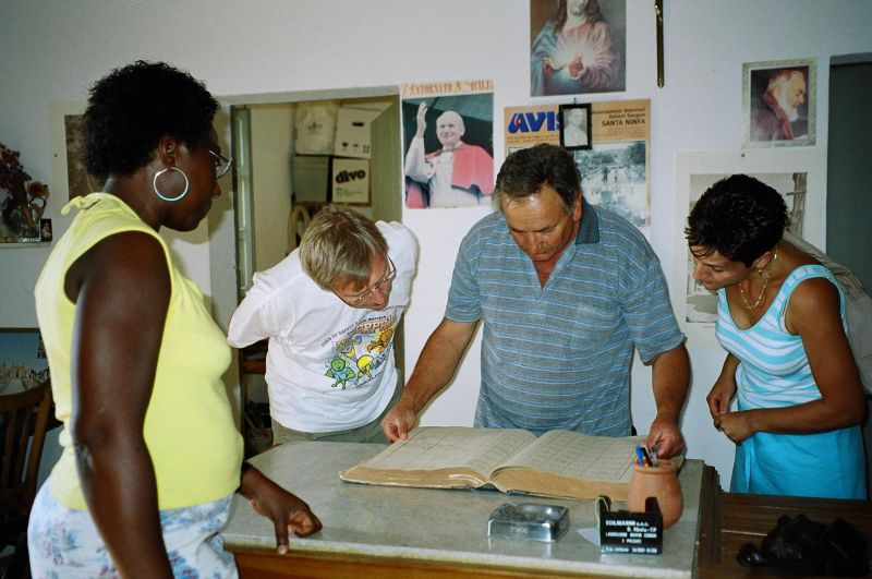 The previous day we had scouted the town hall and found the room for vital statistics so we breezed in and said 'Hi'. No-one spoke a word of English but we had a copy of Diane's grandfather's birth certificate. The people quickly got the idea and started a search. Very nice people. They even roped in the big Boss to help. Apparently one filing cabinet has all the people filed by family which was a minor problem because the family name had been changed to Geramita after arrival in America, and there were two families - Giaramida and Giaramita. So we looked for both.