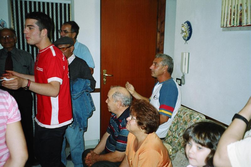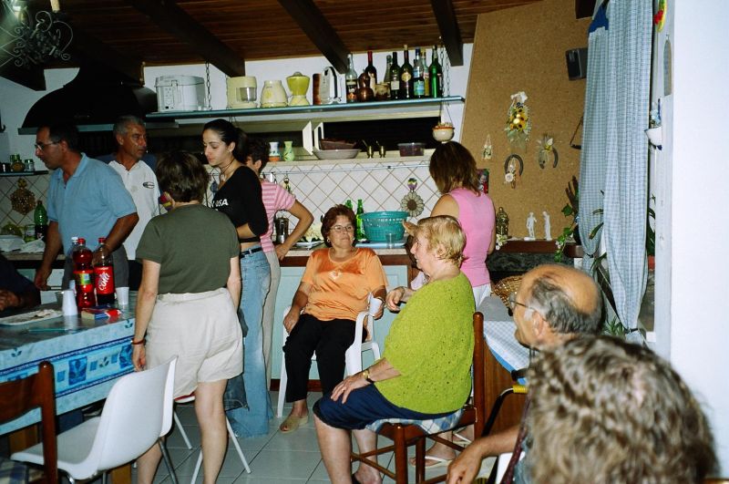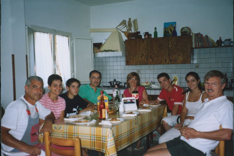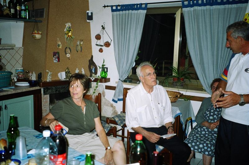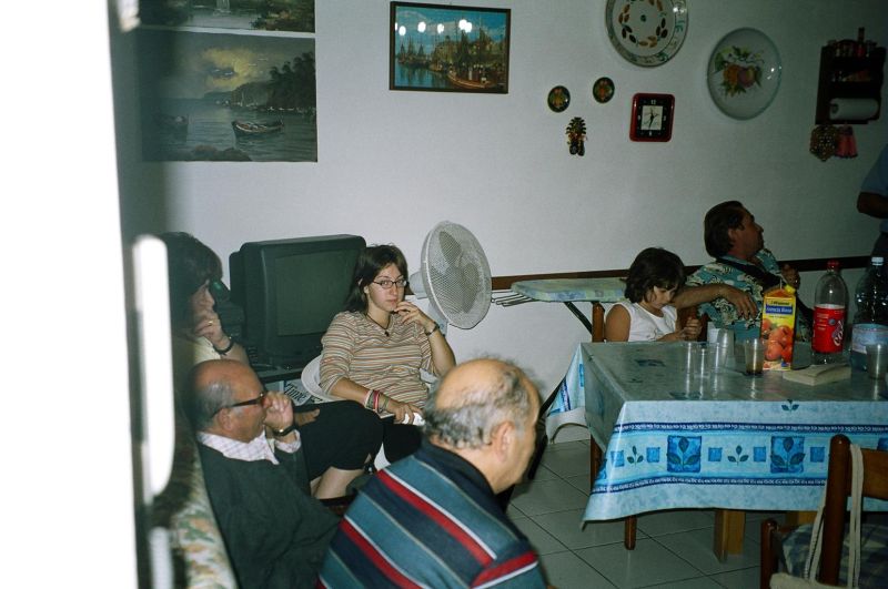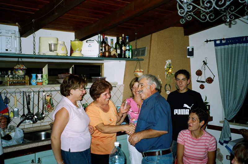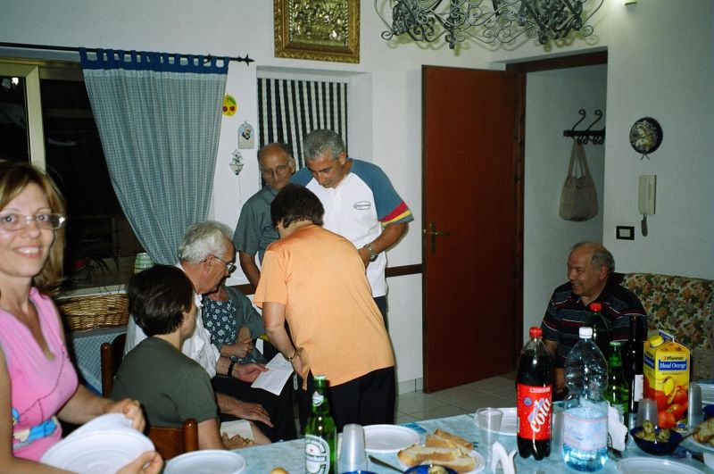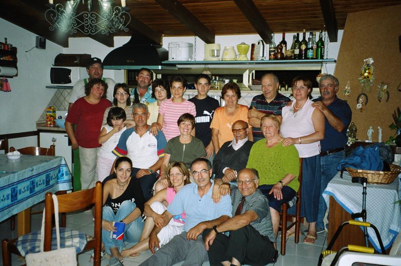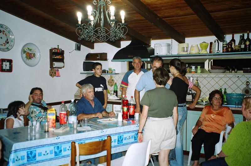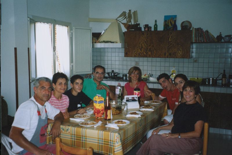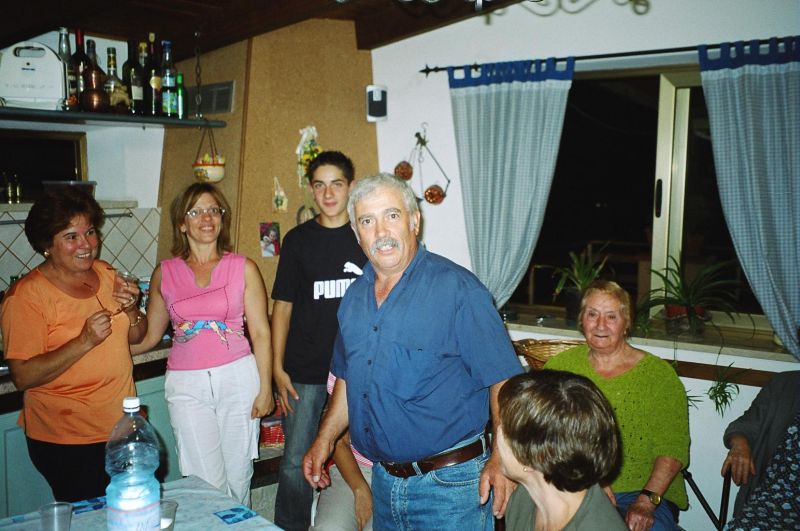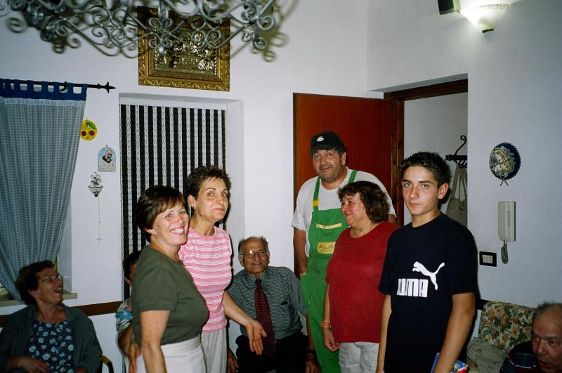 The kernel of the family is three brothers - Guiseppe (Pino) who we had already met, married to Stephani; Giovanni, married to Maria Scarcella who we had already met; and xxx. Pino is a builder and xxx is a baker. The women don't work. Maria was born in Venezuela of Italian parents and she gets teased for a strange accent. The family is very close-knit and is completely at home in the house of either. They seem to eat most meals together as a joint family. This closeness was confusing for a while because Pino took us to Maria, his sister-in-law's, house and we initially thought it was his house and he was therefore married to Maria.
