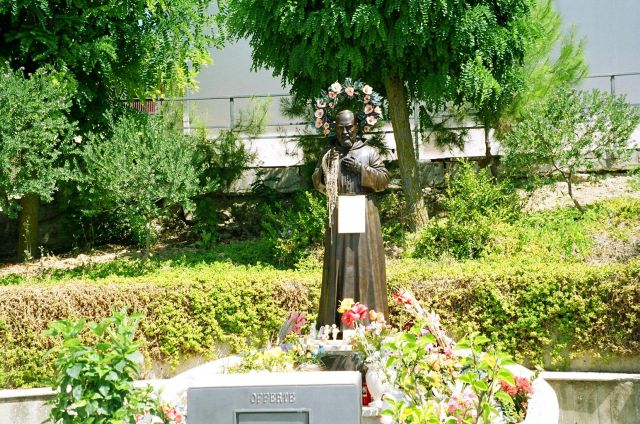 In front of the church there was a very small park containing a statue - Padre Pio. We had seen pictures at Anna Maria's of the Pope, Jesus and this guy who looked a little like Jack Nicholson. She had told us it was Padre Pio and here he was in the flesh, or at least, in the bronze. Everywhere we went in Italy we found pictures of Padre Pio - he as ubiquitous as the Virgin of Guadeloupe is in Mexico.