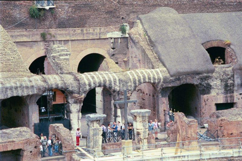 The Colosseum was a wonderful ruin. It had been robbed of much of its marble and earthquakes had done a lot of damage but it was awe-inspiring. Probably the best things we saw were the carved name-stones that reserved the front-row seats for the Senators and the wonderful iron contraptions that held the old building together. The finale was a very poor multimedia presentation that was not really understandable even though it was in English.