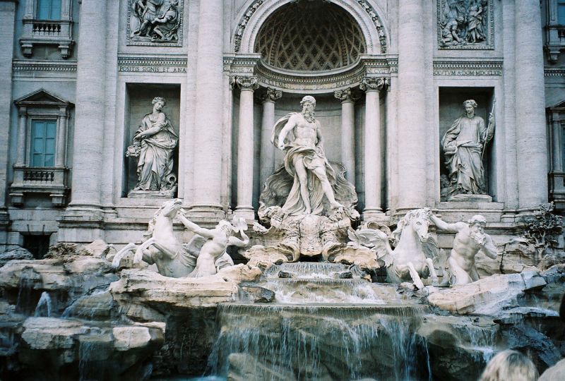 On to the Trevi through narrow streets that looked poorer and poorer as we progressed and we entered a small Piazza filled with people and the Fountain. It was the most spectacular thing we saw on the whole trip. It filled half the square, crawled up the side of a building and had gushing water and sea-figures everywhere.