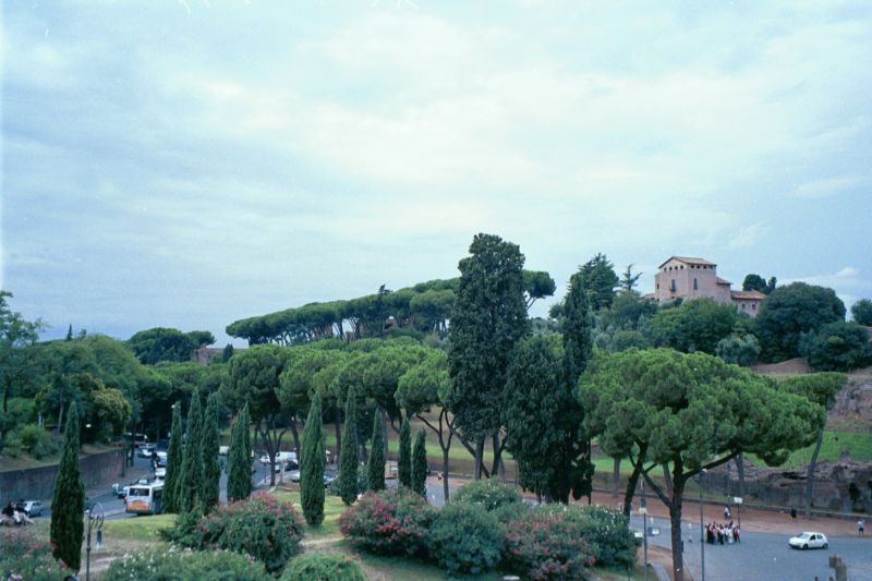 After lunch we held our daily ritual with the ATM machine. It was the wrong variety so we walked up the street a ways looking for one that was friendlier. It started raining and there was a cloudburst again - the second in two days. This time we had no car. We dodged down the street, running between sheltering trees and awnings, trying to get to the Metro while we were merely damp. It rained even harder and along came a street vendor offering umbrellas. The ATM had not given us any money so we told him we only had $2. He agreed that that was a good price!!! SO we now had a very small, very weak umbrella to share and it rained even harder. The street, by now, had a stream that came over our ankles so we gave up trying to get to the Metro, went into a seedy cafe, got a half litre of wine and waited. The stream-road was now over a foot deep and started lapping at the front step of the cafe causing the owner to start sweeping furiously. Simultaneously, the cook ran out of the back sweeping water from the kitchen, yelling in Italian and disappearing again clutching a stack of folded up cardboard boxes. We started brushing up on our meters to cubits conversion tables in case we had to cut wood to make an Ark. But then the rain stopped as quickly as it had started. After ten minutes we could wade over to the Metro and were ready for our next adventure.
