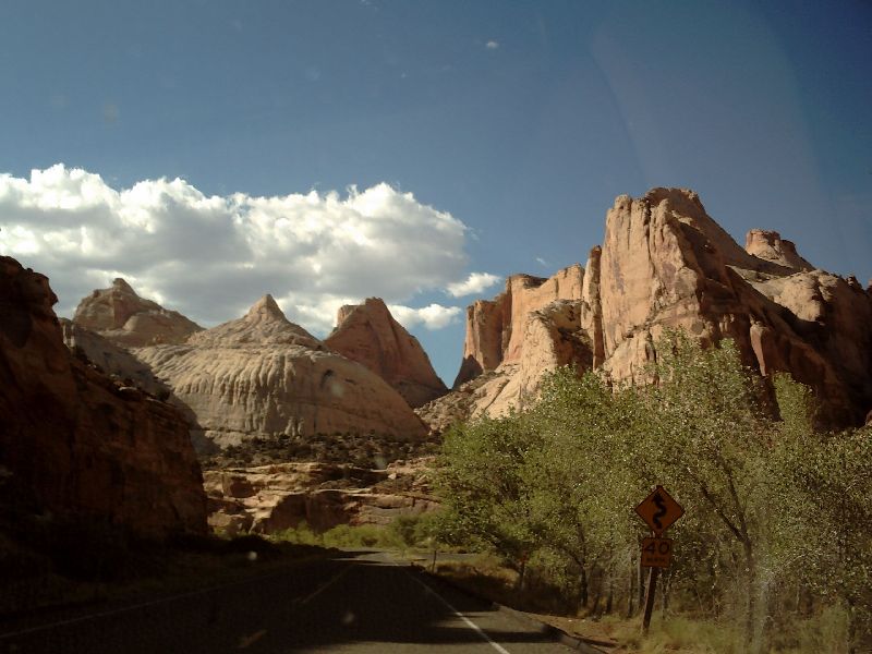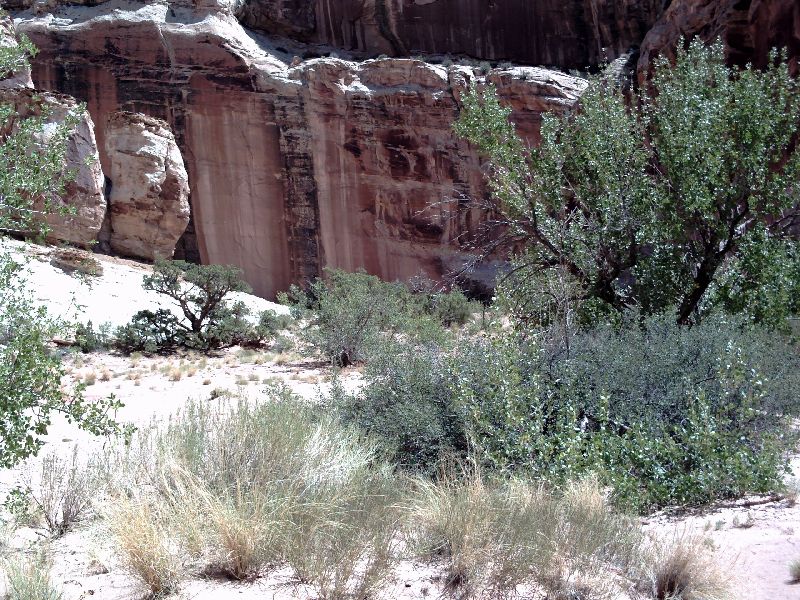 | There was a beautiful camp site at Fruita in the Park. So called because the early Mormon settlers used this valley to grow apples. There are still orchards. |