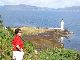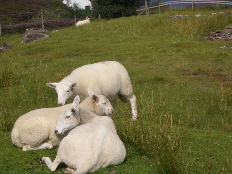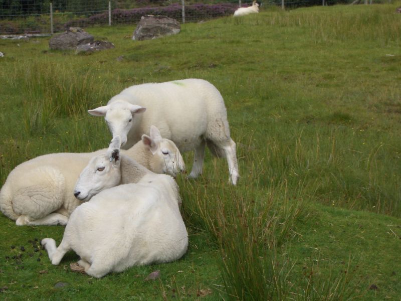 Going across the top and down the left side of the peninsular was beautiful: seascapes on the right and heather-covered hills on the left. The views across to Skye with its tall mountains was fabulous. We met various local inhabitants on the road.