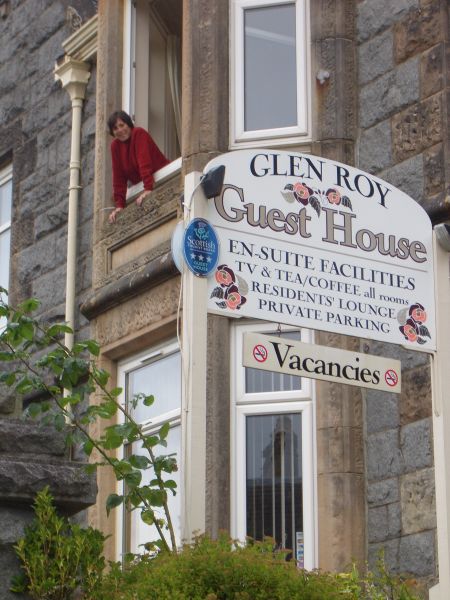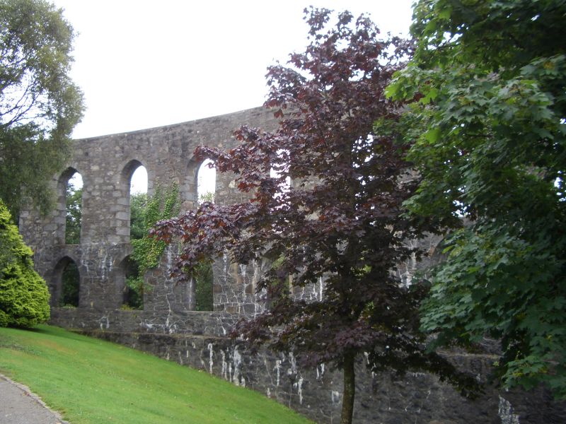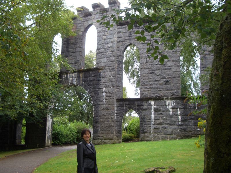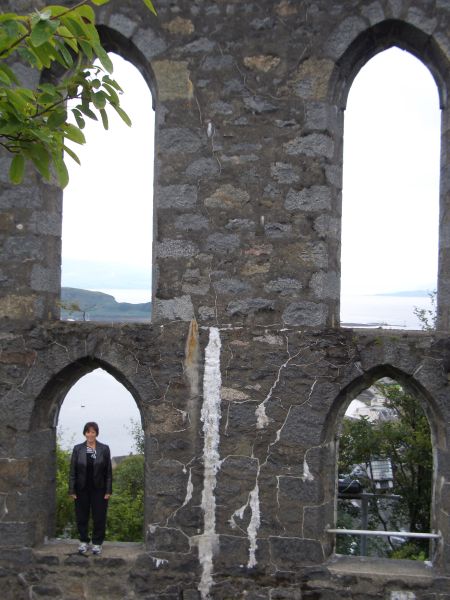On the top of a hill in Oban is a strange structure built by a wealthy merchant in the late 1800s. He intended to have a statue of each of his family members in a window-like opening. Unfortunately he died before his dream was completed. We attempted to put a statue in one of the windows in the last picture.