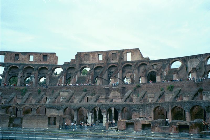 The Colosseum was a wonderful ruin. It had been robbed of much of its marble and earthquakes had done a lot of damage but it was awe-inspiring. Probably the best things we saw were the carved name-stones that reserved the front-row seats for the Senators and the wonderful iron contraptions that held the old building together. The finale was a very poor multimedia presentation that was not really understandable even though it was in English.