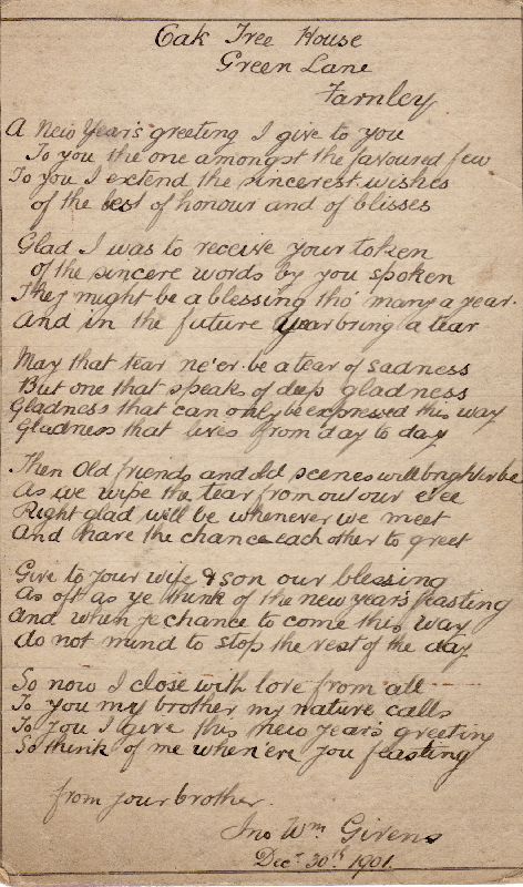 ![]() |     IMG30140.jpg - 1901 New Year's card from John Willie Givens, probably to Elizabeth Ann Givens, his sister |