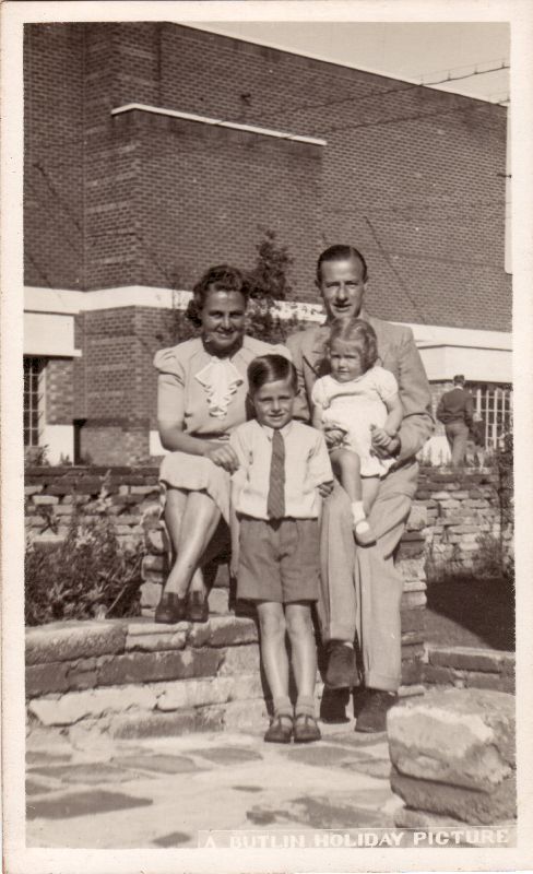 ![]() |     IMG10002.jpg - 1946 Frank, Nellie, Keith, Joan at Butlin's Holiday Camp (an all-in family resort rather like a Cruise on land) |