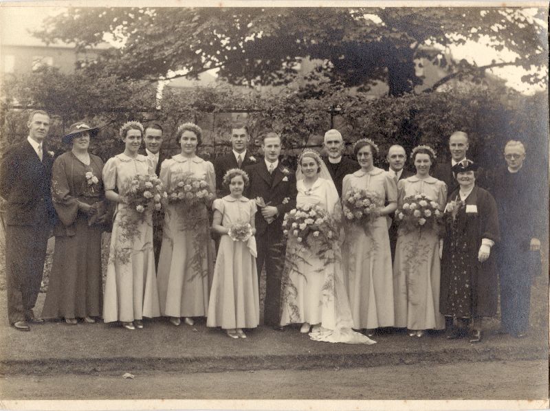 ![]() |     IMG10014.jpg - 1937 Sep Frank and Nellie getting married. GT, Florie, ?Smith, ?Smith, Peggy, John, Frank, Nellie, Rev. Charlesworth, Mary, ?, ?, Philip, ?, ?Rev Ed Charlesworth, Mary, ?Smith, ?Smith, Philip, Grandma Smith, Rev Harry Wright |