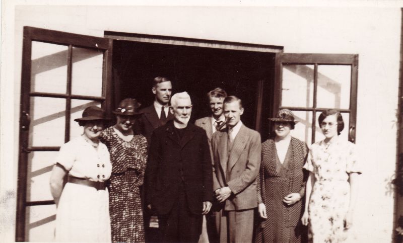 ![]() |     IMG10018.jpg - 1940 Family gathering in Sprotborough. Philip, Rev Ed Charlesworth, Frank, GT, Mary, Maud, Florrie with Keith? And ? |