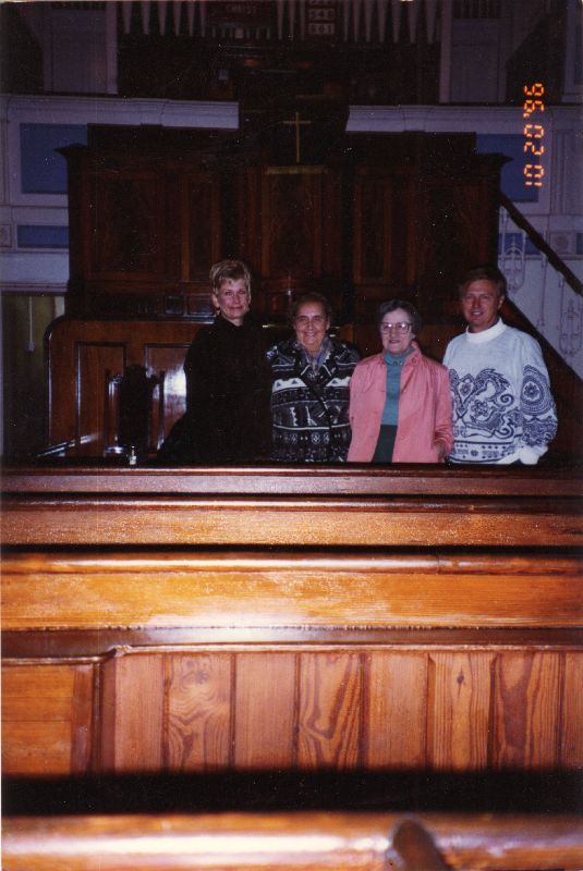 ![]() |     IMG10050.jpg - 1991 Roberta, Caretaker, Mary, Peter. In front of pulpit and organ at Farnley Hill Methodist Chapel |