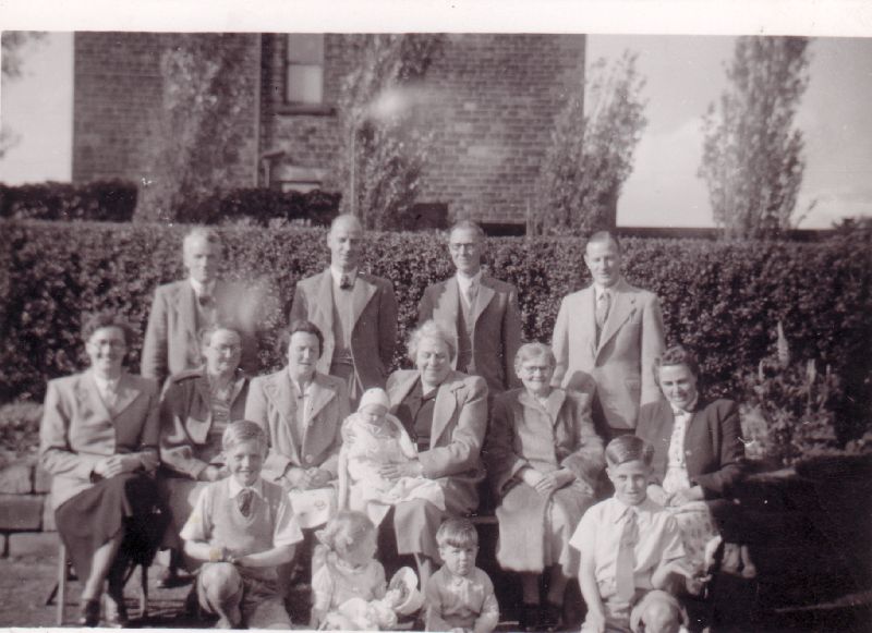 ![]() |     IMG30196.jpg - 1949 Family gathering at Rosemont: Mary, Jim Scott, Nora, Peter, Maud, Philip,Joan, Margaret, Florrie, John, GT, Grandma Smith, Frank, Keith, Nellie |