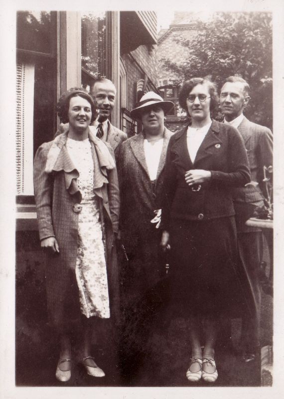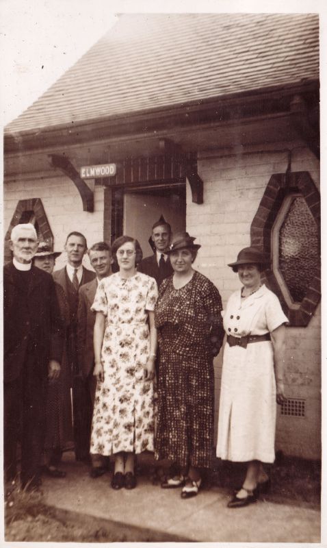 ![]() |     IMG10044.jpg - 1937 Wedding of Philip/Maud?. Nora?, Nellie (Harry's wife)?, Harry. Rev Ed Charlesworth, Jim Scott, GT, Florrie, Mary |