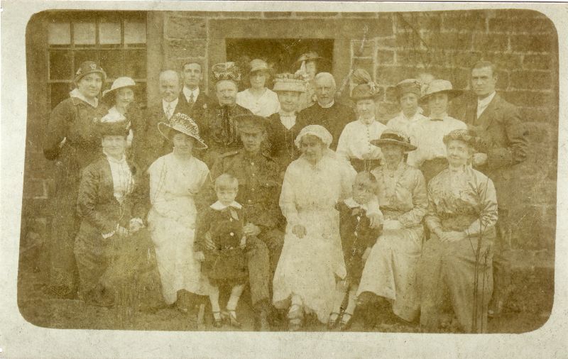 ![]() |     IMG10032.jpg - 1916 Apl Arnold Toothill (uniform) and Ann Schofield get married. Philip and Frank are pageboys? |