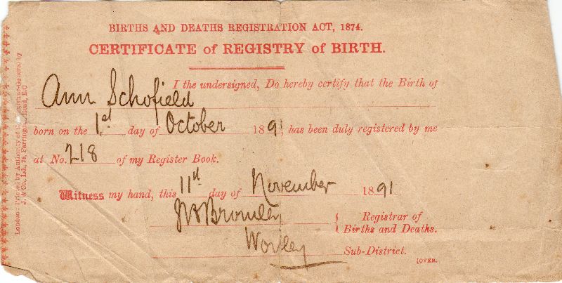 The major players of John Edward's Other Children in our life were Ann (married Arnold Toothill) and Harry