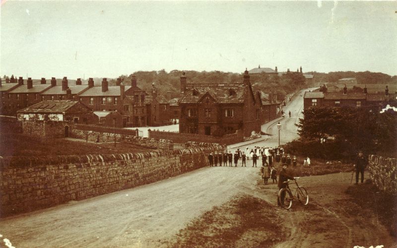 ![]() |     IMG20060.jpg - 1920 View from Whitehall Road down Lawns Lane. The large house on the left is the headmaster of the school. The school (attended by Peter in 1944)is behind and to the left of the houseThe single building to the left again is a billiard hall. The house on the left where the Lane disappears is 27 Lawns Lane - Nora and Jim's house |