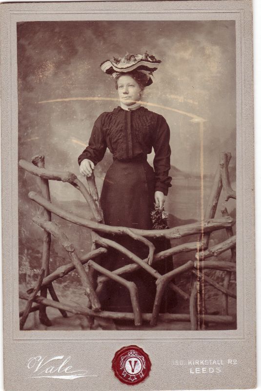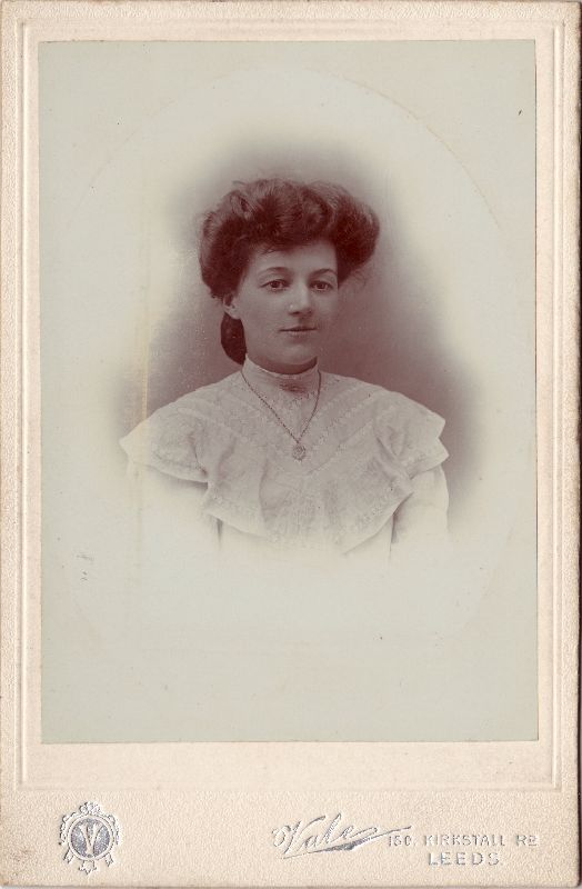 ![]() |     IMG30166.jpg - 1900 Maud Scott (Jim's sister). The back says 'to Jas Scott, No 19 Cobden Terrace, Farnley, Nr. Leeds' |
