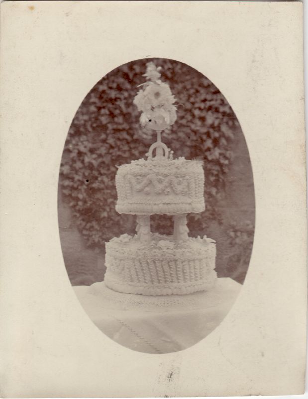 ![]() |     IMG30153.jpg - 1912 Nora and Jim's Wedding Cake made by Aunt Polly. The top layer, according to tradition was kept for Maud's christening |