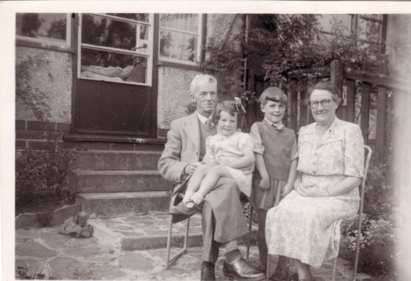 ![]() |     IMG30313.jpg - 1953? Jim, Margaret, John and Nora in the back garden of 103 Green Oak Road |