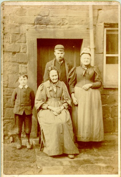 | Scott, Nora Scott | Scott, Nora Scott | 1896? | Scotts-Givens | 15 | Grandad Alfred Givens Grandma Hannah Givens and Nora Scott on the left, all outside Littlewood Cottage |